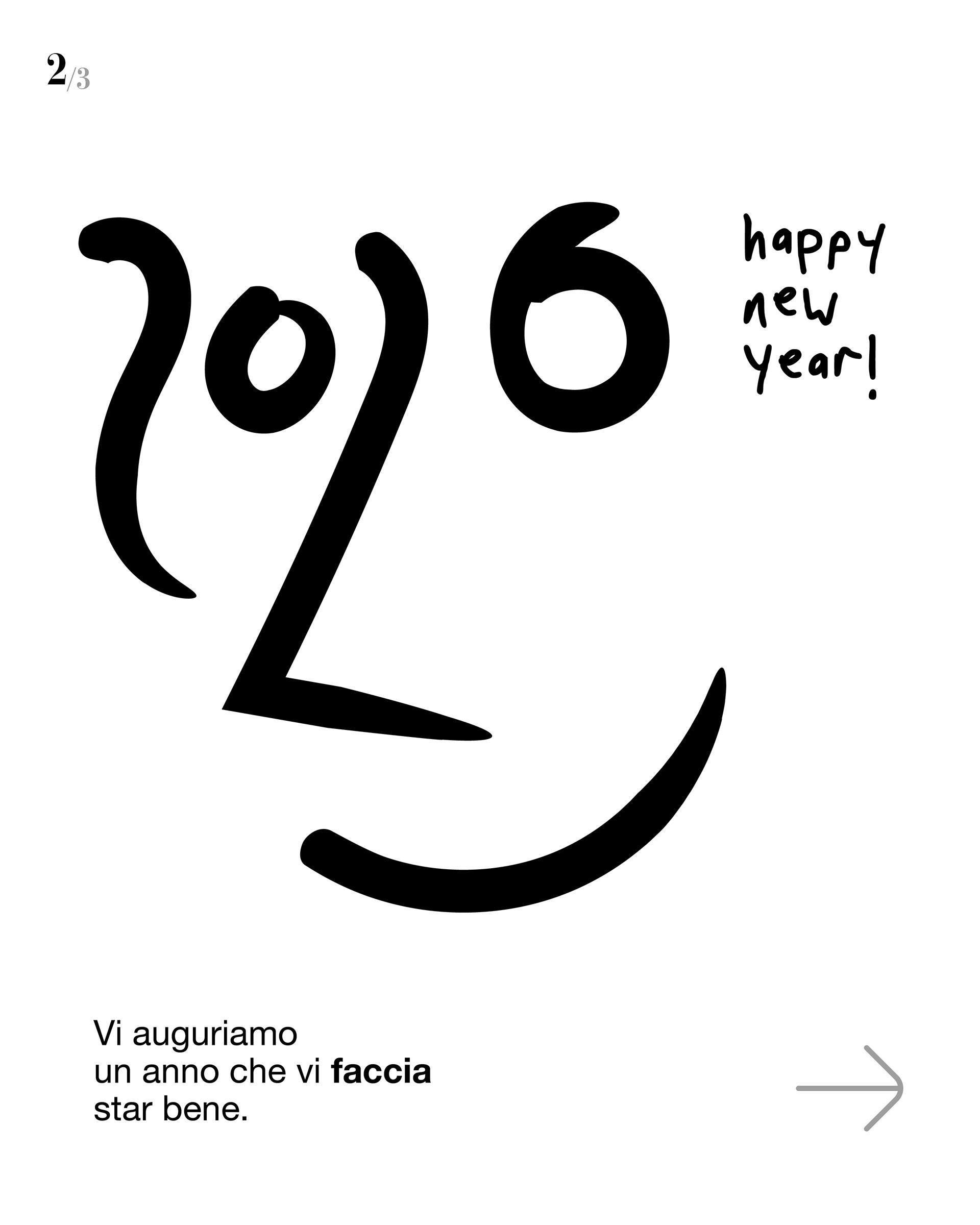 Nell’attesa di tutto questo diamo il benvenuto al 2026 con tre nuove idee: tre modi per iniziare l’anno nuovo con toni, gusti, stili diversi, con quella creatività e leggerezza che ci piace, e che piace. Dalla versione più adv, a quella più art, a quella più copy non c’è che da scegliere. Voi quali auguri preferite?