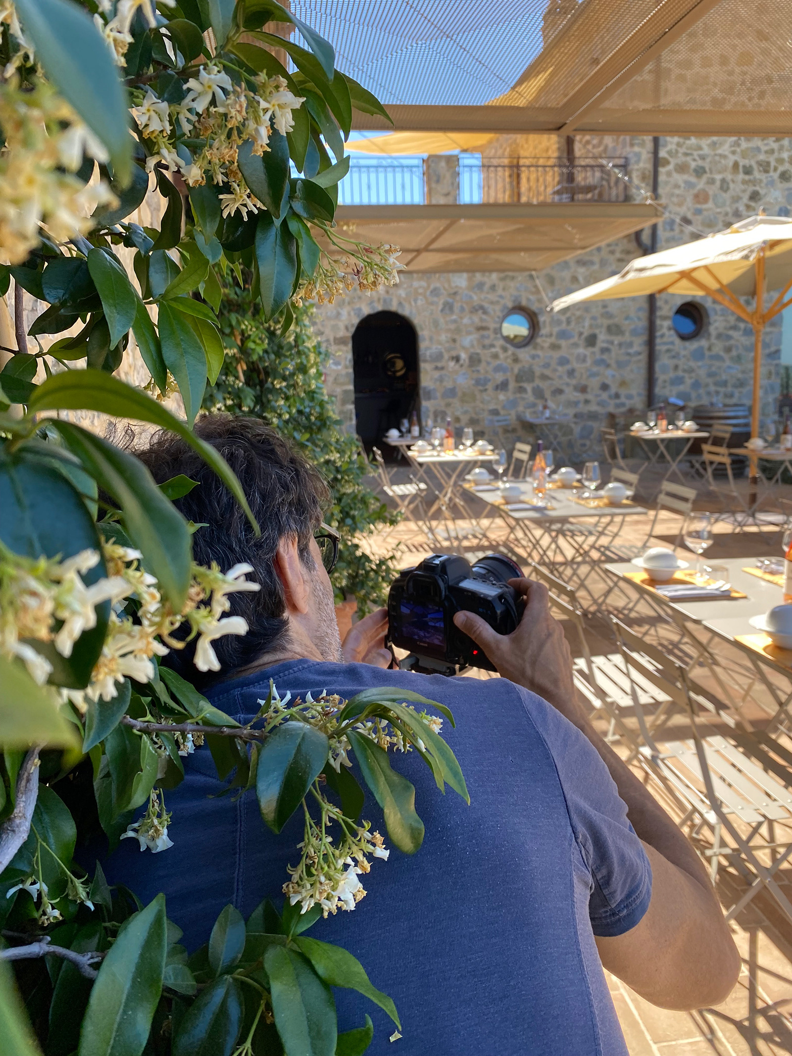 Il giorno dopo l'appuntamento era alle 07:00 ma Aldo a quell’ora aveva già riempito un paio di schede SD: quando lo incontro non mi risparmia sottili stoccate relativamente alla mia sveglia. Ci muoviamo con un Defender dell’89 verso il luogo dello shooting: è un progetto nuovo, bellissimo. È un borgo, originale in tutto e per tutto, qui si faranno grandi feste e matrimoni. C’è anche il vecchio forno del pane, ancora funzionante. Mattina presto esterni, poi durante le ore centrali, gli interni. Rincorro Aldo con la borsa degli obiettivi, ma gli sto sempre a qualche metro: non ne sono certo ma credo lui preferisca così. Le cicale e nient’altro accompagnano una mattina intensa, fatta di confronti continui e programmazione di scatti in funzione del sole, Aldo mi dice “è lui che comanda”.