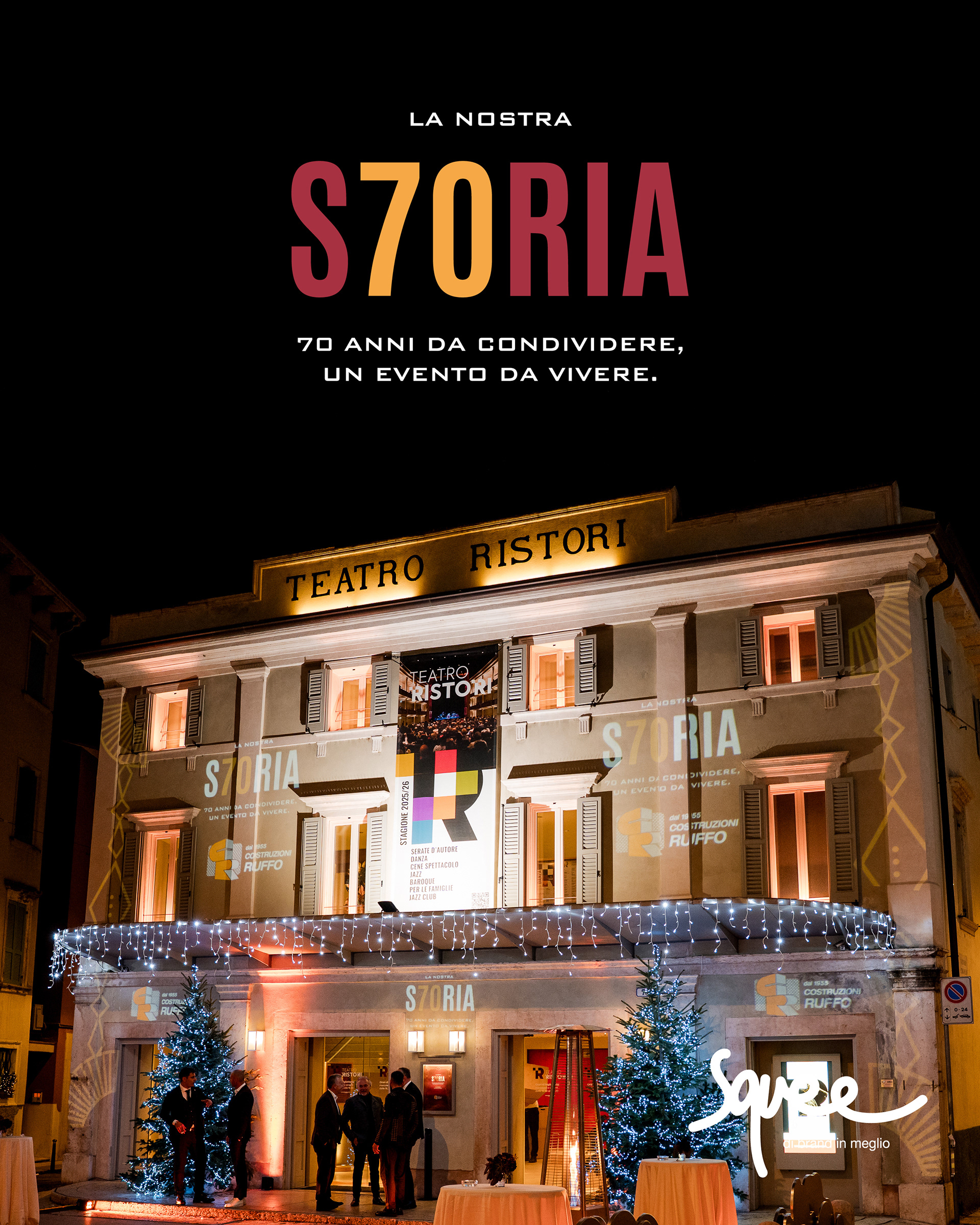 Settant'anni in una serata unica: potremmo riassumere così l'evento del 5 dicembre al Teatro Ristori per celebrare l'anniversario di Costruzioni Ruffo. Una serata per noi iniziata presto, molto presto, prima dell'estate, quando l'impresa edile di Caldiero ci ha coinvolti per dare all'evento un nome, una forma, un'immagine. E per dare un volto siamo partiti dall'anima del brand, perché Costruzioni Ruffo ha una storia unica e solida come ciò che realizza.